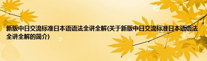 本文关于新版中日交流标准日本语语法全讲全解的简介就讲解完毕,希望对大家有所帮助。