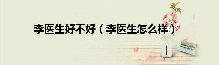 以上就是【李医生好不好,李医生怎么样】相关内容。