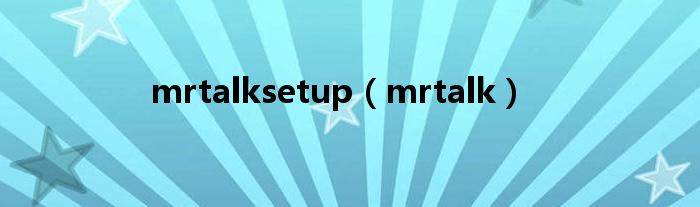 大家好,小问来为大家解答以上问题。mrtalksetup,mrtalk这个很多人还不知道,现在让我们一起来看看吧!