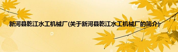 本文关于新河县乾江水工机械厂的简介就讲解完毕,希望对大家有所帮助。