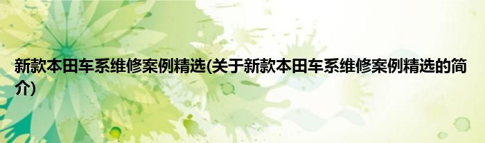 本文关于新款本田车系维修案例精选的简介就讲解完毕,希望对大家有所帮助。