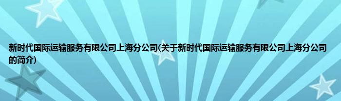 大家好,新时代国际运输服务有限公司上海分公司,关于新时代国际运输服务有限公司上海分公司的简介很多人还不知道,现在让我们一起来看看吧!