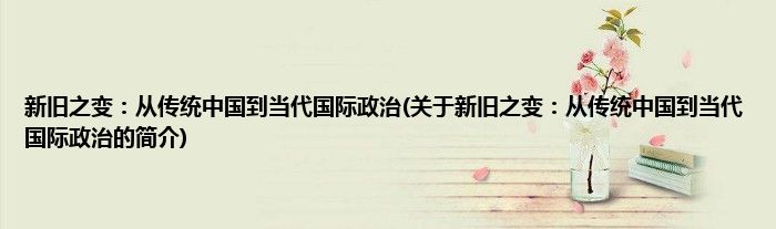 本文关于新旧之变:从传统中国到当代国际政治的简介就讲解完毕,希望对大家有所帮助。