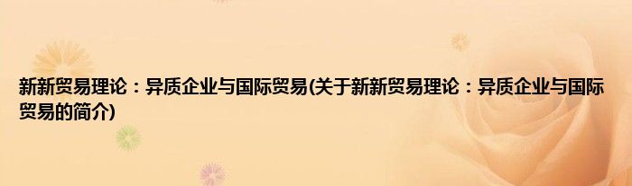 大家好,新新贸易理论:异质企业与国际贸易,关于新新贸易理论:异质企业与国际贸易的简介很多人还不知道,现在让我们一起来看看吧!