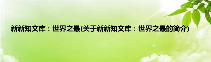1、 《新新知文库:世界之最(彩色插图版)》在知识的面前有厚有薄,有轻有重,我们奉献给您的也许在您的生活当中早就耳濡目染。