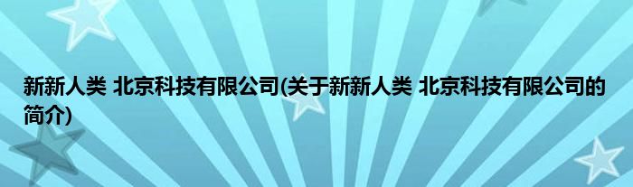 本文关于新新人类 北京科技有限公司的简介就讲解完毕,希望对大家有所帮助。