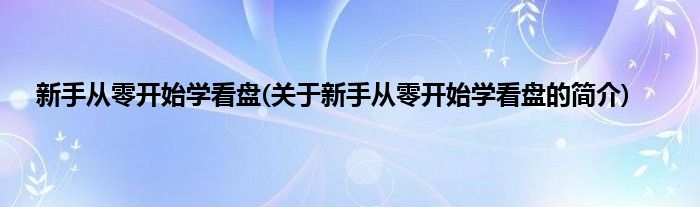 大家好,新手从零开始学看盘,关于新手从零开始学看盘的简介很多人还不知道,现在让我们一起来看看吧!