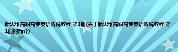 大家好,新思维高职高专英语听说教程 第1册,关于新思维高职高专英语听说教程 第1册的简介很多人还不知道,现在让我们一起来看看吧!