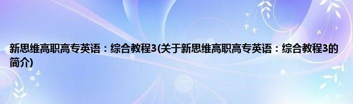 本文关于新思维高职高专英语:综合教程3的简介就讲解完毕,希望对大家有所帮助。