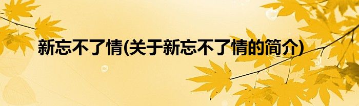 本文关于新忘不了情的简介就讲解完毕,希望对大家有所帮助。