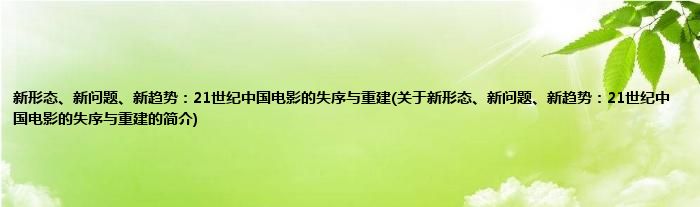 本文关于新形态、新问题、新趋势:21世纪中国电影的失序与重建的简介就讲解完毕,希望对大家有所帮助。