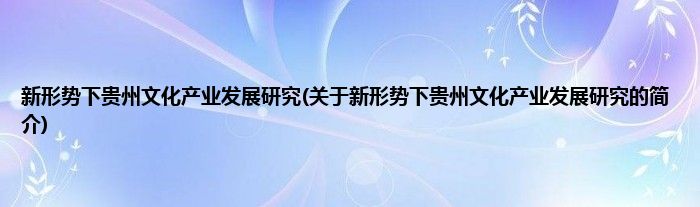 新形势下贵州文化产业发展研究(关于新形势下贵州文化产业发展研究的简介)