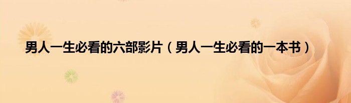 大家好,小问来为大家解答以上问题。男人一生必看的六部影片,男人一生必看的一本书这个很多人还不知道,现在让我们一起来看看吧!