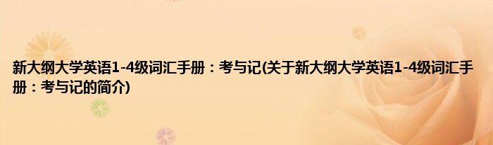本文关于新大纲大学英语1-4级词汇手册:考与记的简介就讲解完毕,希望对大家有所帮助。