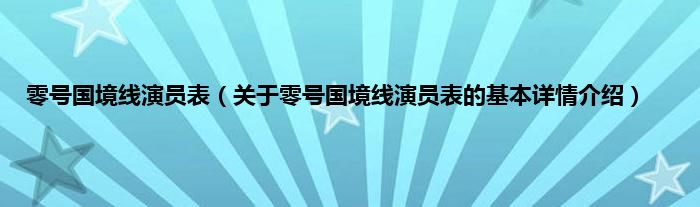 本文关于零号国境线演员表的基本详情介绍就讲解完毕,希望对大家有所帮助。