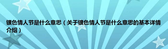 本文关于银色情人节是什么意思的基本详情介绍就讲解完毕,希望对大家有所帮助。