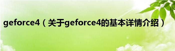 本文关于geforce4的基本详情介绍就讲解完毕,希望对大家有所帮助。