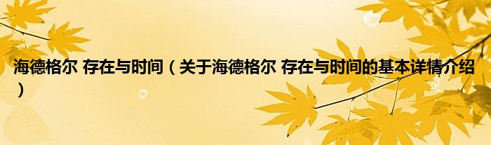 本文关于海德格尔 存在与时间的基本详情介绍就讲解完毕,希望对大家有所帮助。