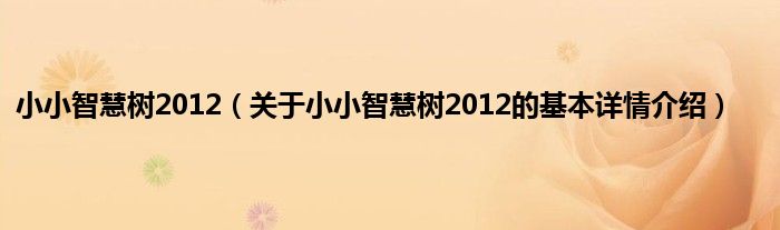 本文关于小小智慧树2012的基本详情介绍就讲解完毕,希望对大家有所帮助。