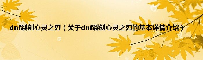 本文关于dnf裂创心灵之刃的基本详情介绍就讲解完毕,希望对大家有所帮助。