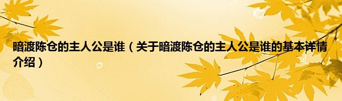 本文关于暗渡陈仓的主人公是谁的基本详情介绍就讲解完毕,希望对大家有所帮助。