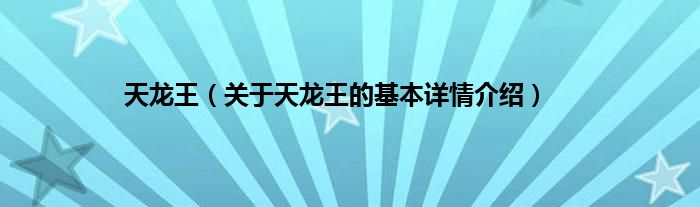 本文关于天龙王的基本详情介绍就讲解完毕,希望对大家有所帮助。