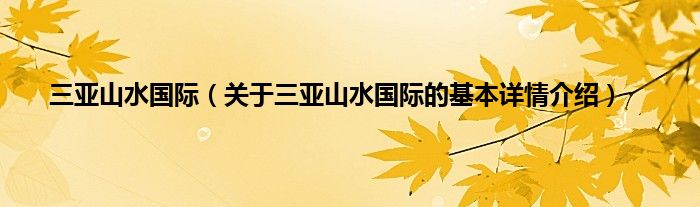 本文关于三亚山水国际的基本详情介绍就讲解完毕,希望对大家有所帮助。