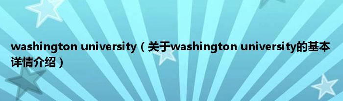 本文关于washington university的基本详情介绍就讲解完毕,希望对大家有所帮助。