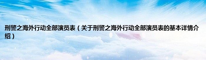 本文关于刑警之海外行动全部演员表的基本详情介绍就讲解完毕,希望对大家有所帮助。