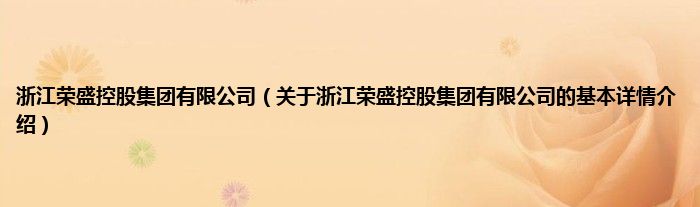本文关于浙江荣盛控股集团有限公司的基本详情介绍就讲解完毕,希望对大家有所帮助。