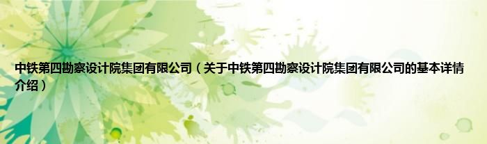 本文关于中铁第四勘察设计院集团有限公司的基本详情介绍就讲解完毕,希望对大家有所帮助。