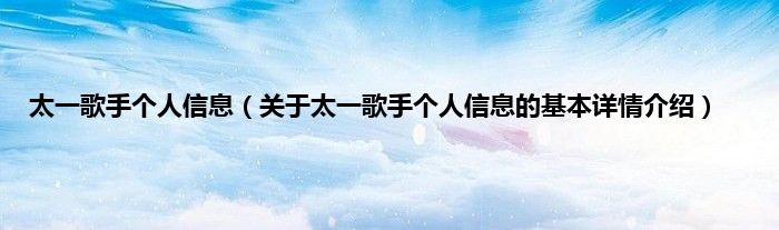 本文关于太一歌手个人信息的基本详情介绍就讲解完毕,希望对大家有所帮助。