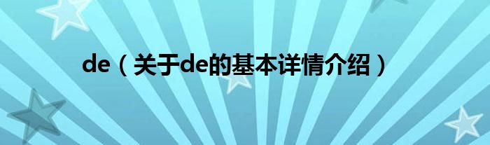 本文关于de的基本详情介绍就讲解完毕,希望对大家有所帮助。