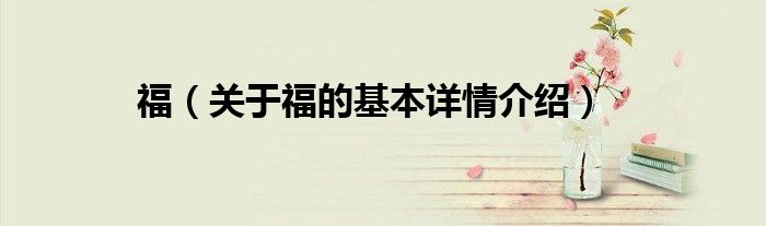 本文关于福的基本详情介绍就讲解完毕,希望对大家有所帮助。