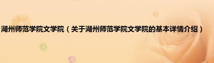 湖州师范学院文学院(关于湖州师范学院文学院的基本详情介绍)