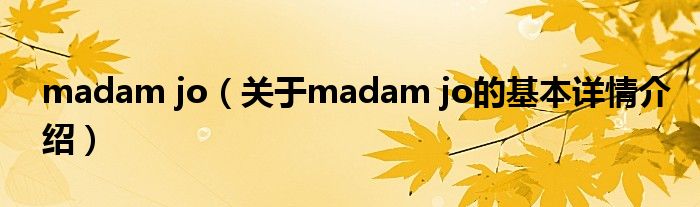 本文关于madam jo的基本详情介绍就讲解完毕,希望对大家有所帮助。