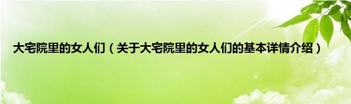 本文关于大宅院里的女人们的基本详情介绍就讲解完毕,希望对大家有所帮助。