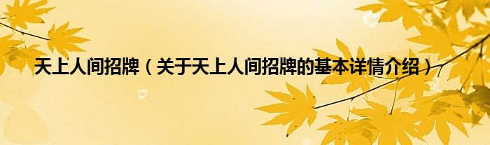 本文关于天上人间招牌的基本详情介绍就讲解完毕,希望对大家有所帮助。