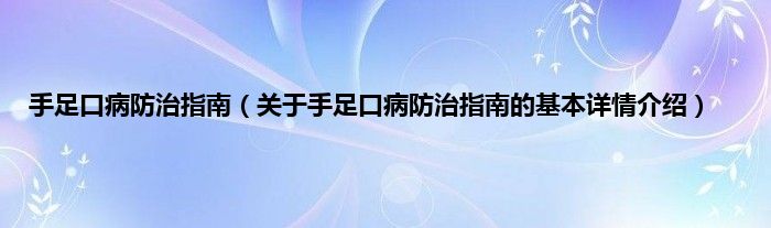 本文关于手足口病防治指南的基本详情介绍就讲解完毕,希望对大家有所帮助。