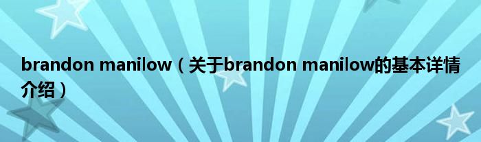 本文关于brandon manilow的基本详情介绍就讲解完毕,希望对大家有所帮助。