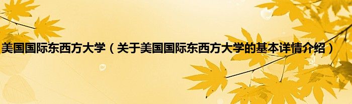 本文关于美国国际东西方大学的基本详情介绍就讲解完毕,希望对大家有所帮助。