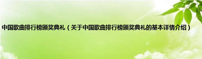 本文关于中国歌曲排行榜颁奖典礼的基本详情介绍就讲解完毕,希望对大家有所帮助。