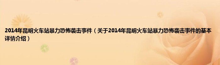 本文关于2014年昆明火车站暴力恐怖袭击事件的基本详情介绍就讲解完毕,希望对大家有所帮助。