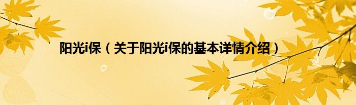 本文关于阳光i保的基本详情介绍就讲解完毕,希望对大家有所帮助。