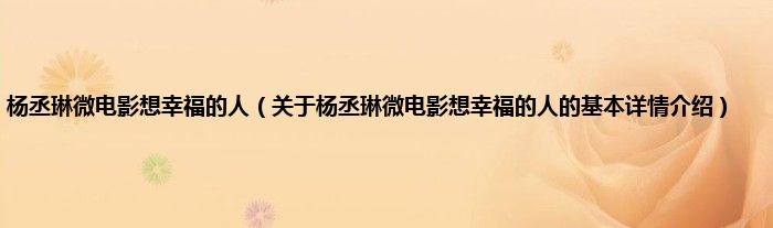本文关于杨丞琳微电影想幸福的人的基本详情介绍就讲解完毕,希望对大家有所帮助。