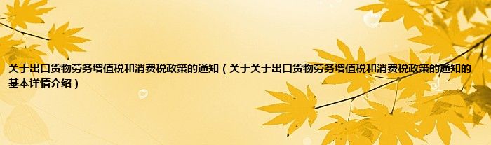 本文关于关于出口货物劳务增值税和消费税政策的通知的基本详情介绍就讲解完毕,希望对大家有所帮助。