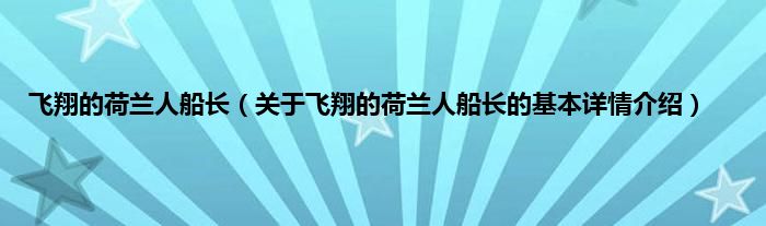 本文关于飞翔的荷兰人船长的基本详情介绍就讲解完毕,希望对大家有所帮助。