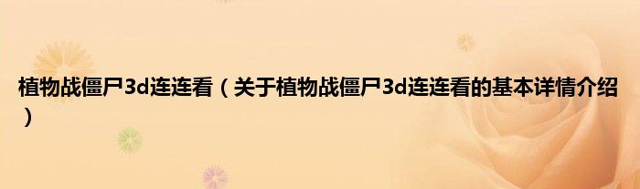 本文关于植物战僵尸3d连连看的基本详情介绍就讲解完毕,希望对大家有所帮助。