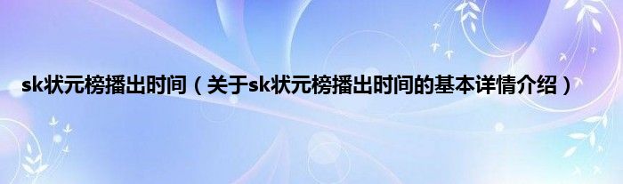 本文关于sk状元榜播出时间的基本详情介绍就讲解完毕,希望对大家有所帮助。