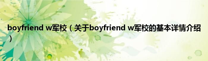 本文关于boyfriend w军校的基本详情介绍就讲解完毕,希望对大家有所帮助。